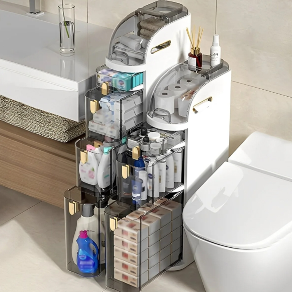 Dar alanları verimli kullanmak için tasarlanan çok katlı düzenleyici dolap, banyo, mutfak, çamaşır odası ve yaşam alanlarınızda eşyalarınızı toparlayarak ferah bir görünüm oluşturur. Temizlik ürünleri, kişisel bakım eşyaları, mutfak gereçleri ve günlük ihtiyaçlar… Hepsi düzenli, ulaşılabilir ve tek yerde!